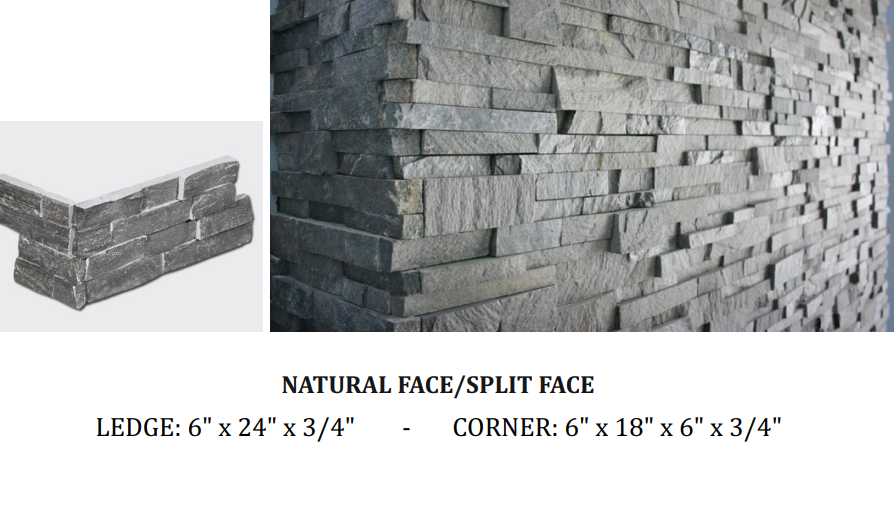 Slate: Revel in the rustic charm of Slate, a metamorphic rock featuring unique textures and earthy tones. Ideal for flooring, countertops, and accent walls, Slate adds a touch of organic warmth to any space.